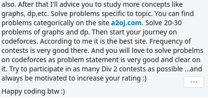 - Start involving in competitive programming, and learn DSA { Data Structures & Algorithms} as soon as possible.