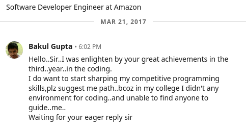 Now, this is the first time, I have started exploring the various fields: competitive programming, hacking, etc.