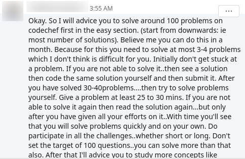 - Start involving in competitive programming, and learn DSA { Data Structures & Algorithms} as soon as possible.